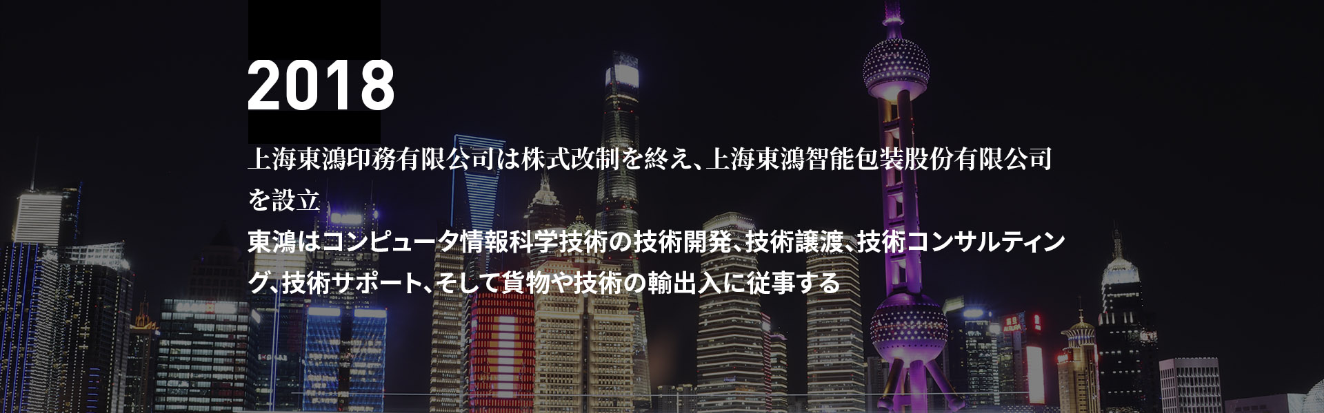 2018年に上海東鴻印務有限公司は株式改制を終え、上海東鴻智能包装股份有限公司を設立した。東鴻はコンピュータ情報科学技術の技術開発、技術譲渡、技術コンサルティン......